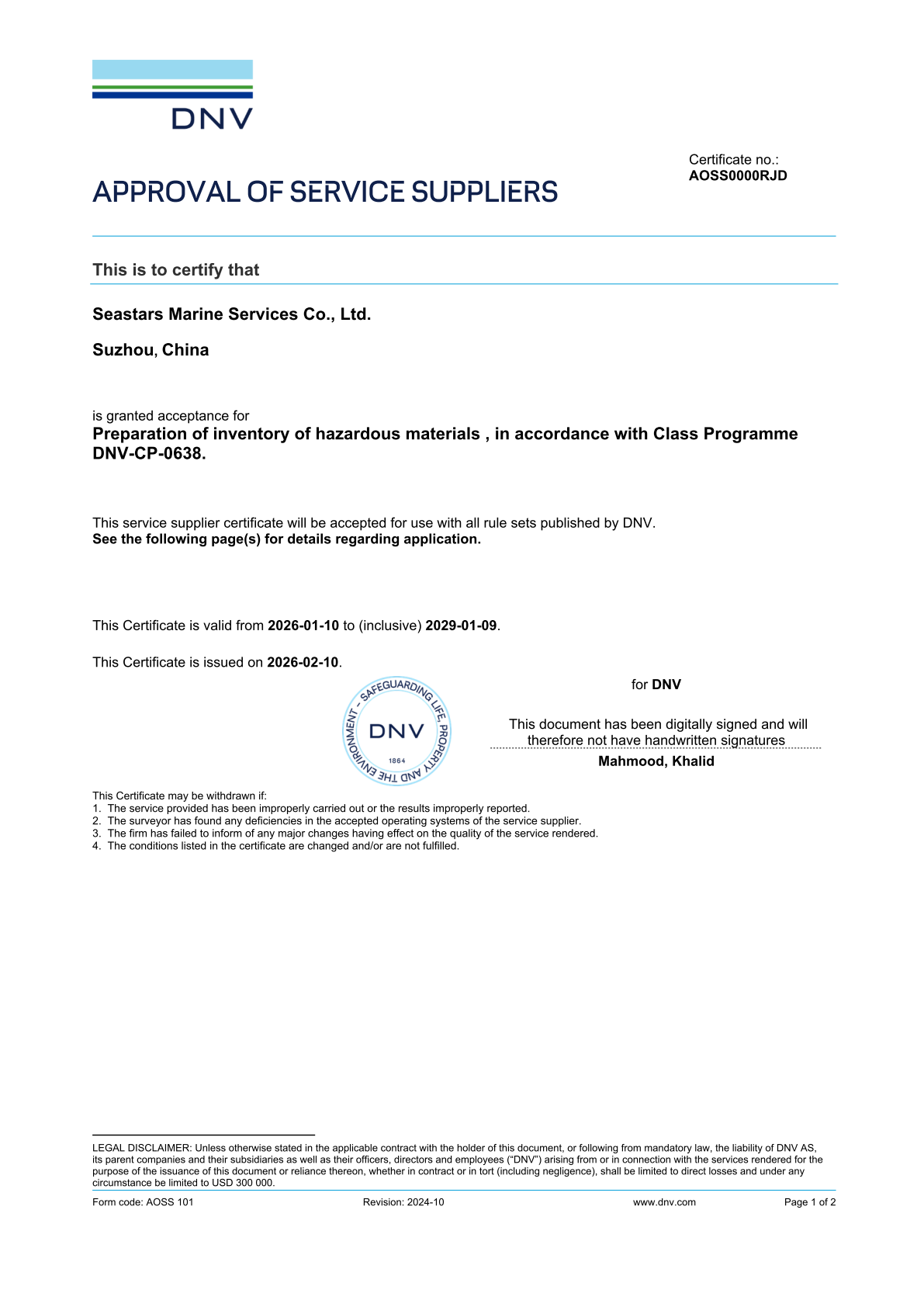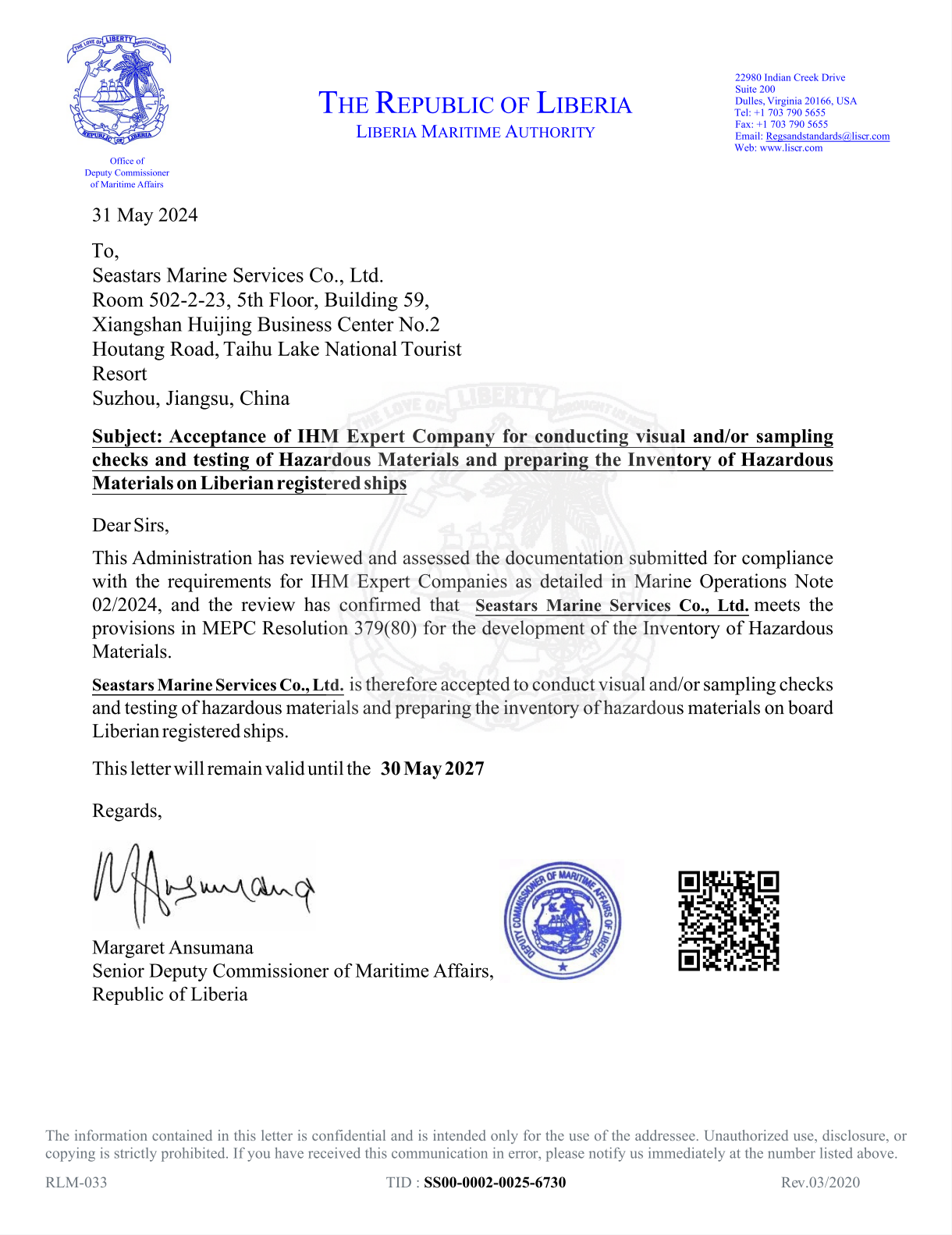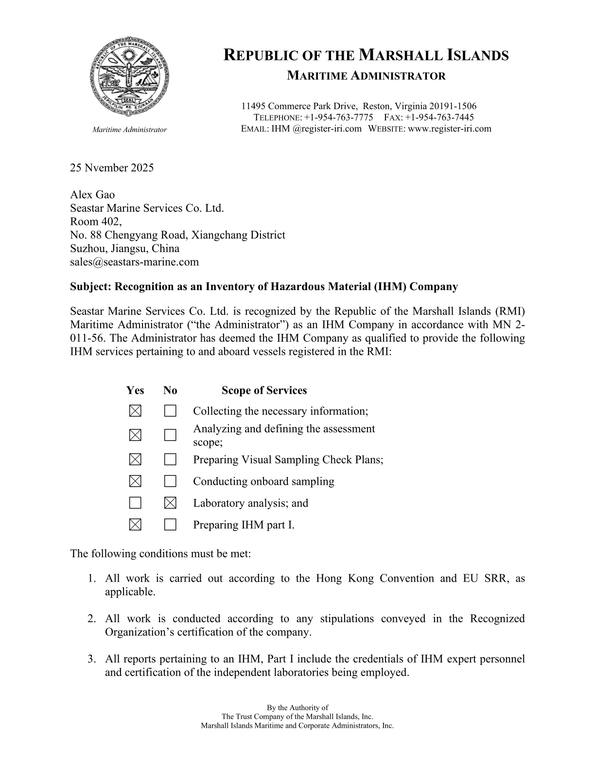 ISO 9001 Accredited service provider, Approved by leading classification societies including NK, DNV, ABS, KR, BV and the Marshall Islands and Liberia Maritime Administrations.